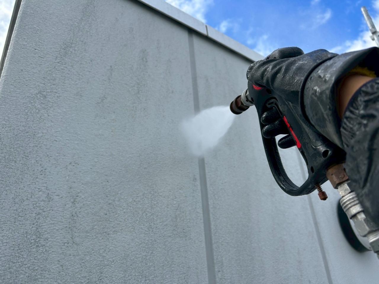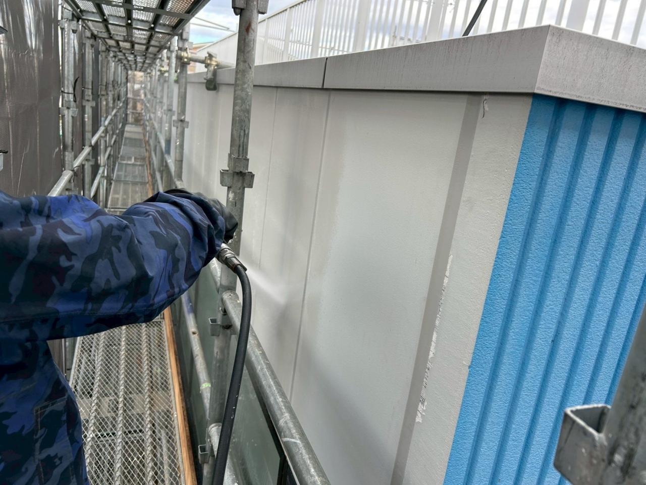 先日は会社様の塗装工事の前の外壁高圧洗浄を行いました。