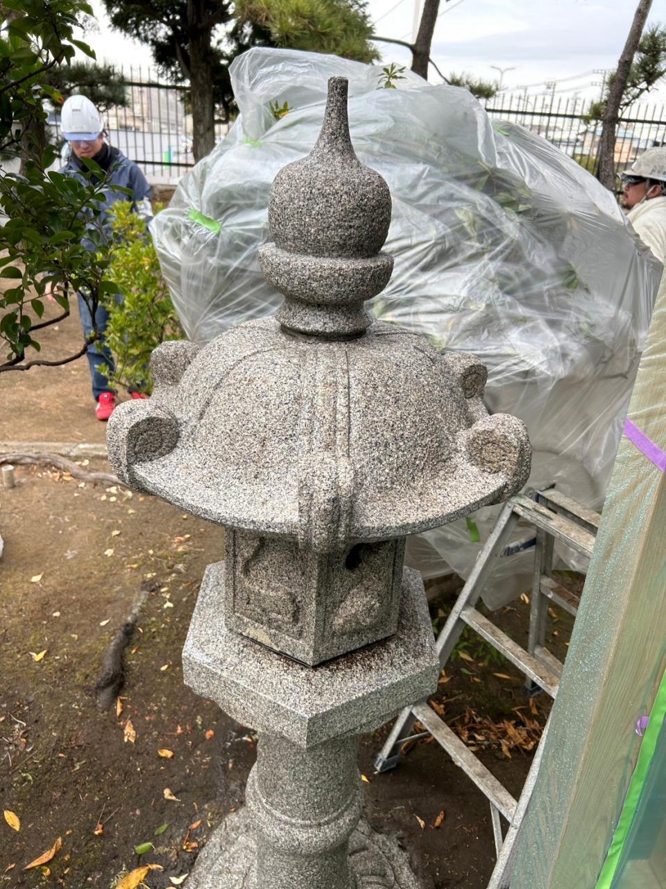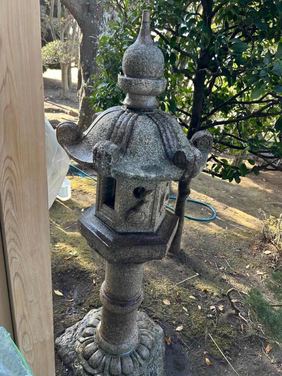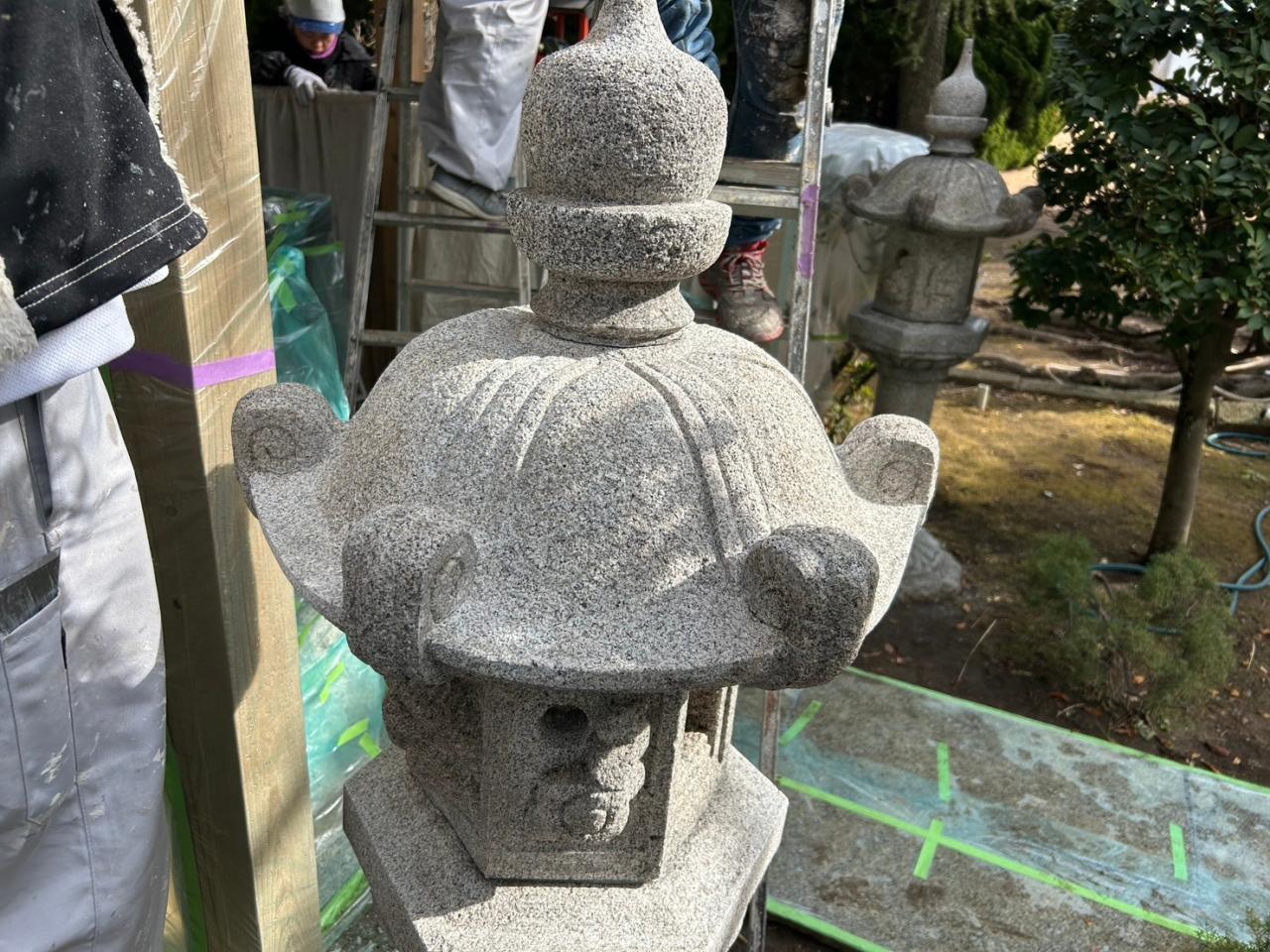 洗浄が難しい 石材 灯篭の特殊洗浄を行いました。