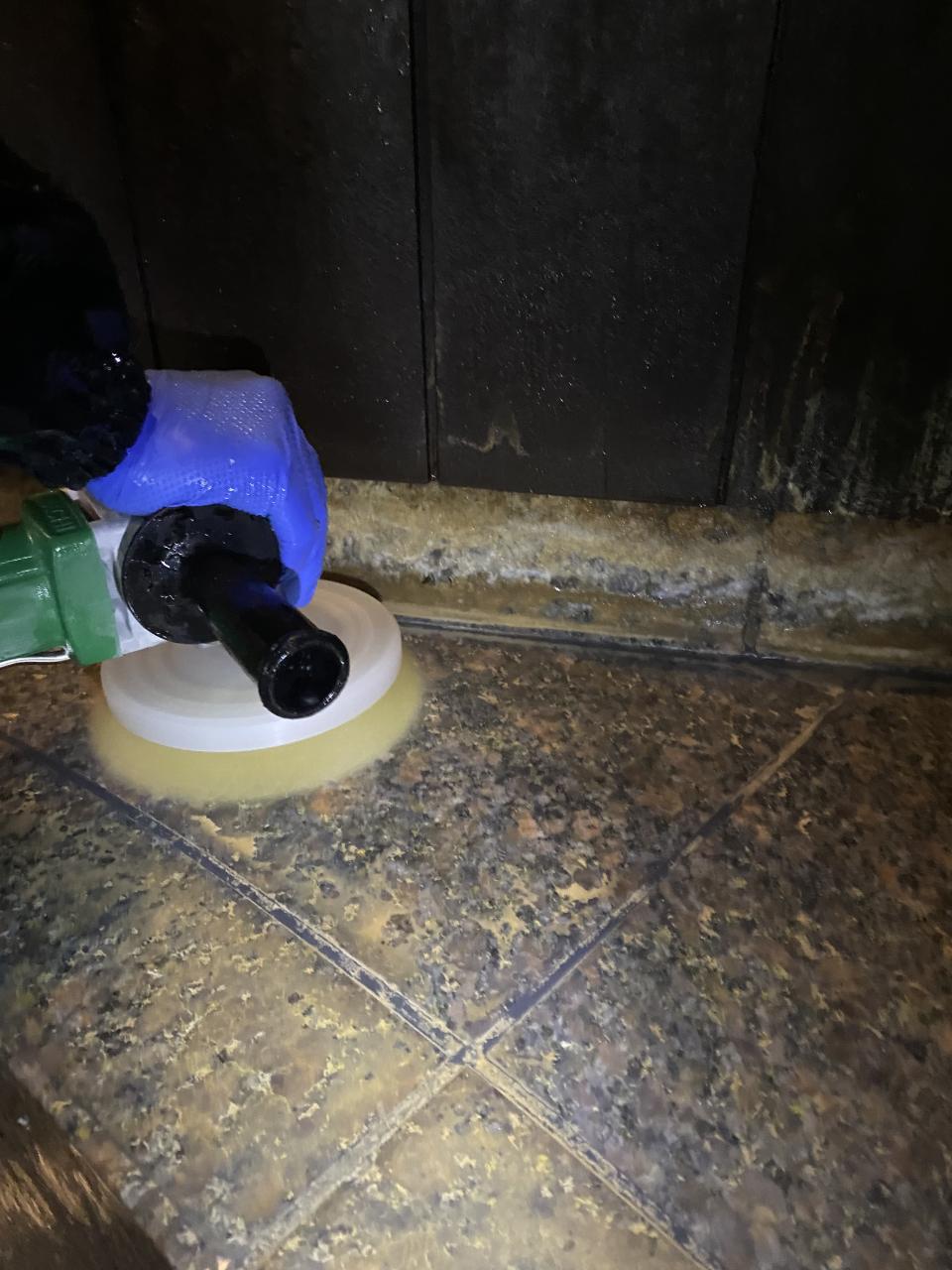 酸性の汚れにはアルカリ性ですが、効き目が無いのでダイヤモンドパッドでの研磨洗浄を行いました。