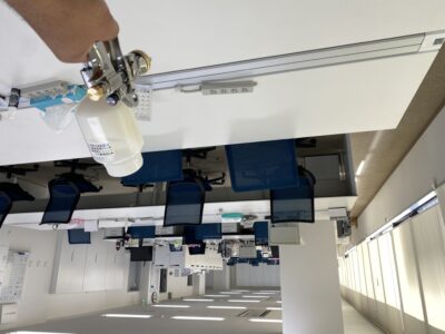 ただし、天井・壁・柱など、建物躯体への摩擦刺激はあまりないため、クロスを変えるなどがない限り、躯体全体の塗膜で守られるものだとお考え下さい。光触媒はスポット的に活用するより、空間を光触媒で包むことで、高い効果を得られるものです。